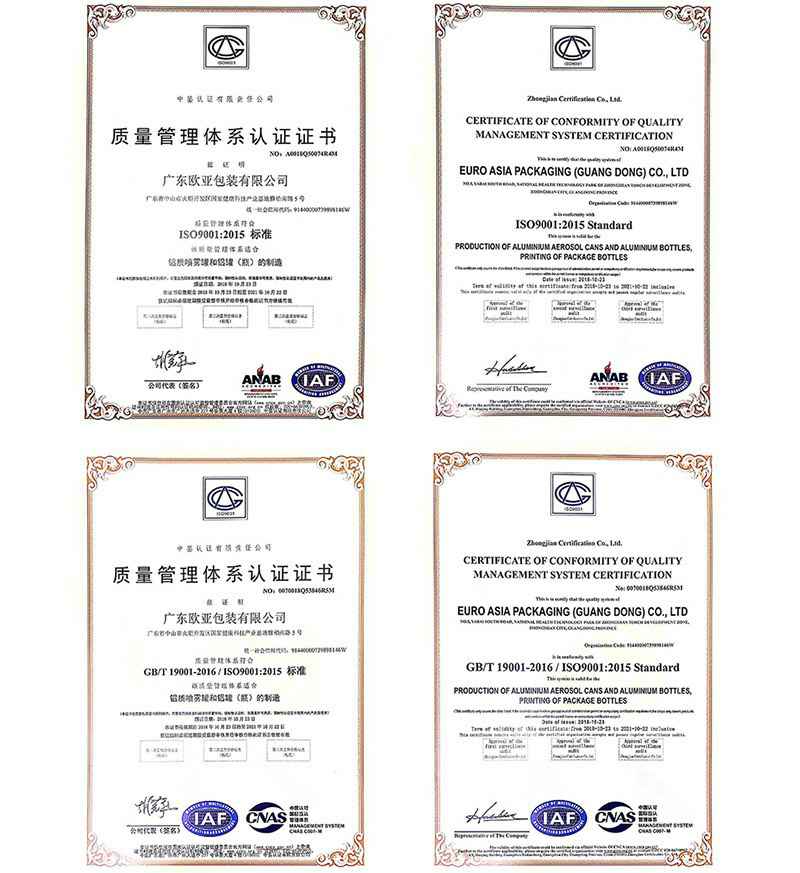 自成立以来,公司一贯推行严格的质量控制体系,始终坚持“以质为本,诚信服务,科学管理,持续改进”的质量方针,以用户为关注焦点,站在客户的角度为客户监控质量。自2002年起先后取得国内GB/T19001-2008标准质量管理体系认证证书,ISO9001:2000、9001:2008质量管理体系认证证书(ANAB),国家药材包装材料和容器注册证、出口危险货物包装容器质量许可证、全国工业产品生产许可证。2015年连续获得“广东省著名商标证书”, “中国包装优秀研发中心”称号, “中国包装优秀产业基地”称号,广东省采用国际标准产品认可证书,ISO9001-2015版新版证书;2016年获“高新技术产品”证书,“中包联科学技术奖二等奖”,“广东省轻工业协会进步奖”,“广东省守合同重信用企业”,“全国轻工业质量管理小组优秀企业”,“全国轻工业卓越绩效先进企业”,“中山市科技进步奖三等奖”;2017年获“高新技术企业证书”,“DOT认证证书”;多项技术和产品获得了国家专利。公司产品获得了诸多国内外知名品牌日化用品公司和医药用品公司包括:美国安利、宝洁、吉列、德国汉高、英国联合利华、法国CD、日本花王、云南白药、广州好迪、武汉丝宝、沈阳红药等,均为行业龙头企业。